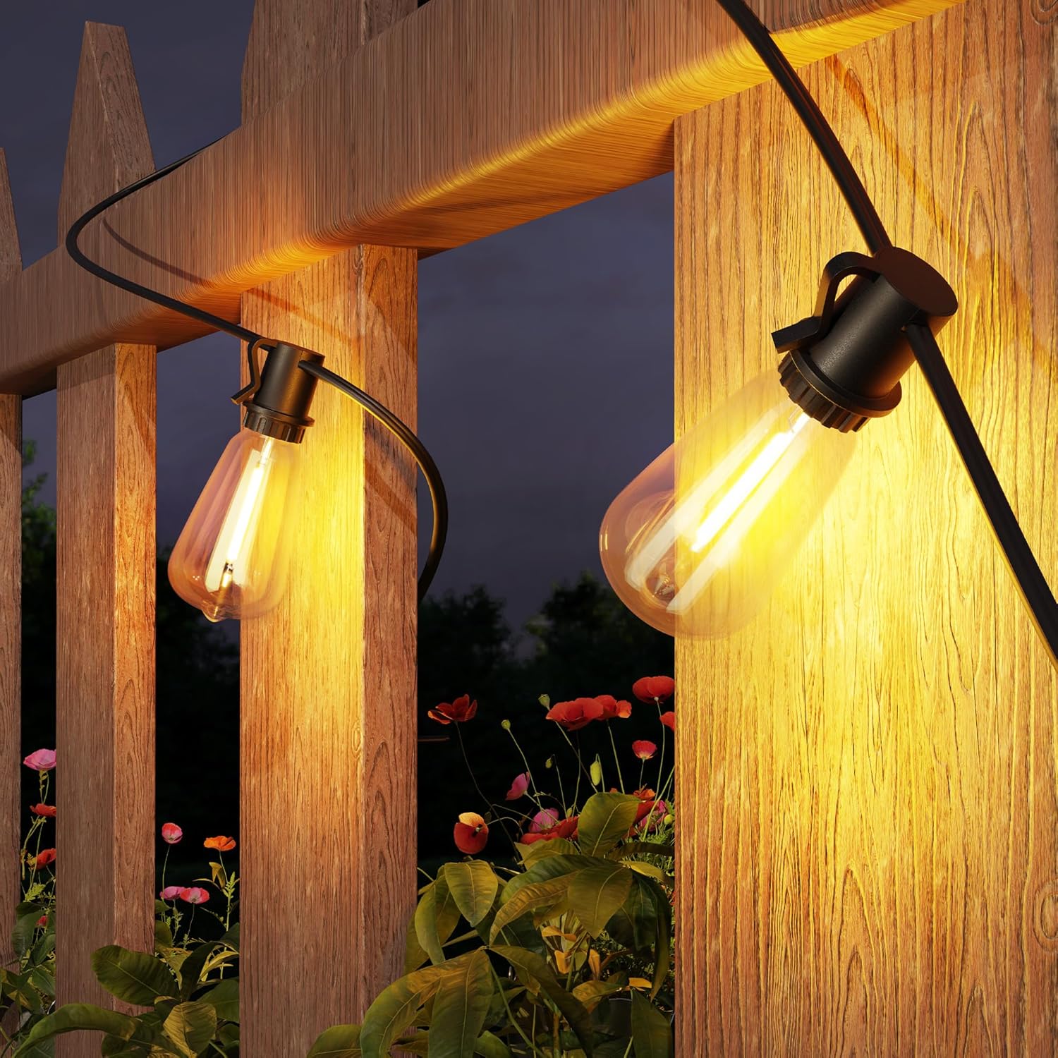 Cozy Patio & Backyard Lighting: These string light bulbs Emit a soft 2700K warm white glow that creates a relaxing, inviting atmosphere. These outdoor string light bulbs are perfect for patios, decks, gardens, balconies, caf¨¦s, and outdoor parties, delivering a cozy, vintage Edison-style ambiance